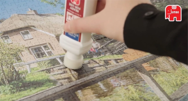 Šķidra līme puzlēm JUMBO Puzzle Fixative nodrošina pastāvīgu salīmēšanu pabeigtajam attēlam un tā vienkāršu izstādīšanu. Tā ir gatava tūlītējai lietošanai, ar praktisku sūklīti vienmērīgai uzklāšanai un pietiek aptuveni 2 × 1000 gab. Ātri žūst – žūšanas laiks ir apmēram 2 stundas.