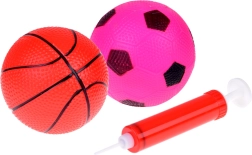 Divas pūšamās bumbiņas ar pumpīti ir gatavas mešanai un vienkāršām bumbu spēlēm. Spalvu lotiņa trenē precizitāti un reakciju.