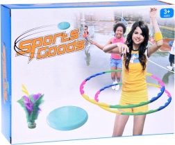 Šis daudzkrāsainais āra komplekts piedāvā visu, kas bērniem vajadzīgs aktīvai izklaidei. Pateicoties 55 cm diametra hula hopam, vieglam metamo disku frīsbijam, lecamauklai ar garuma regulāciju līdz 255 cm, pūšamajām bumbiņām un krāsainai spalvu lotiņai, bērni izkustina visu ķermeni, uzlabo līdzsvaru un metienu precizitāti.