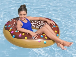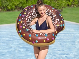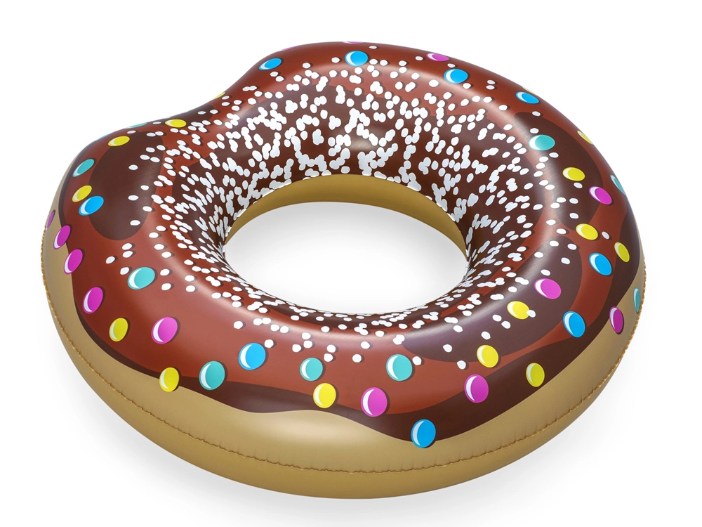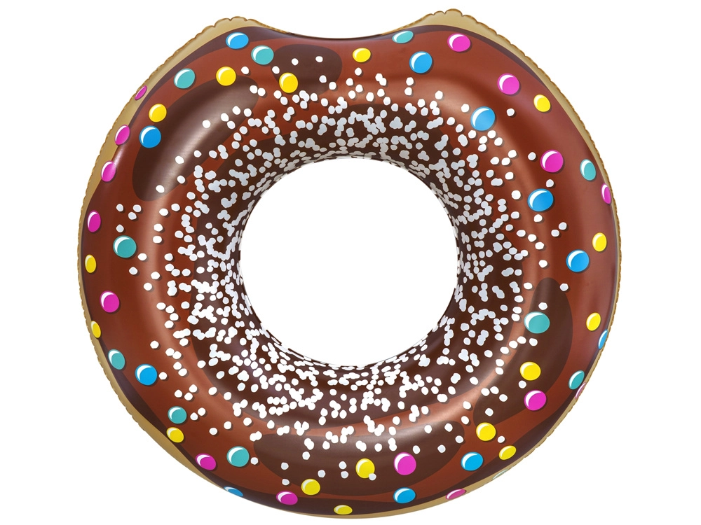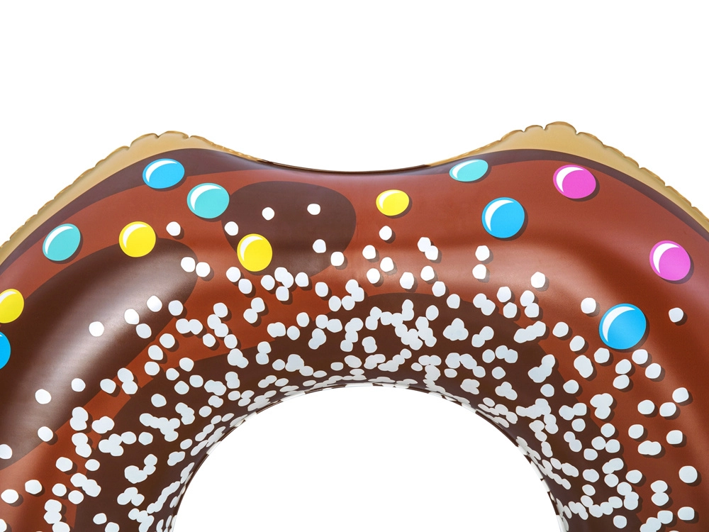 Reālistisks šokolādes donuta izskats ar krāsainiem pārkaisījumiem iemirdzinās jebkuru baseinu un piešķirs jūsu vasarai stilu.