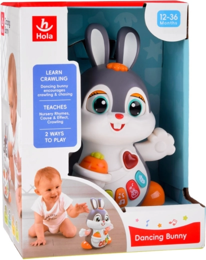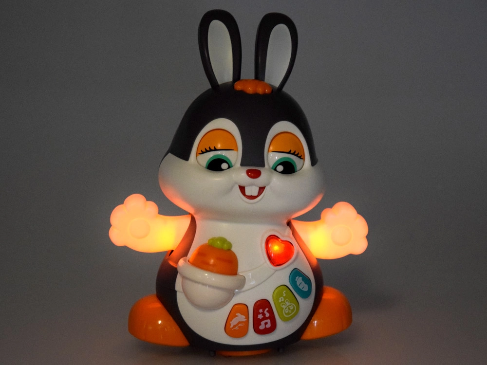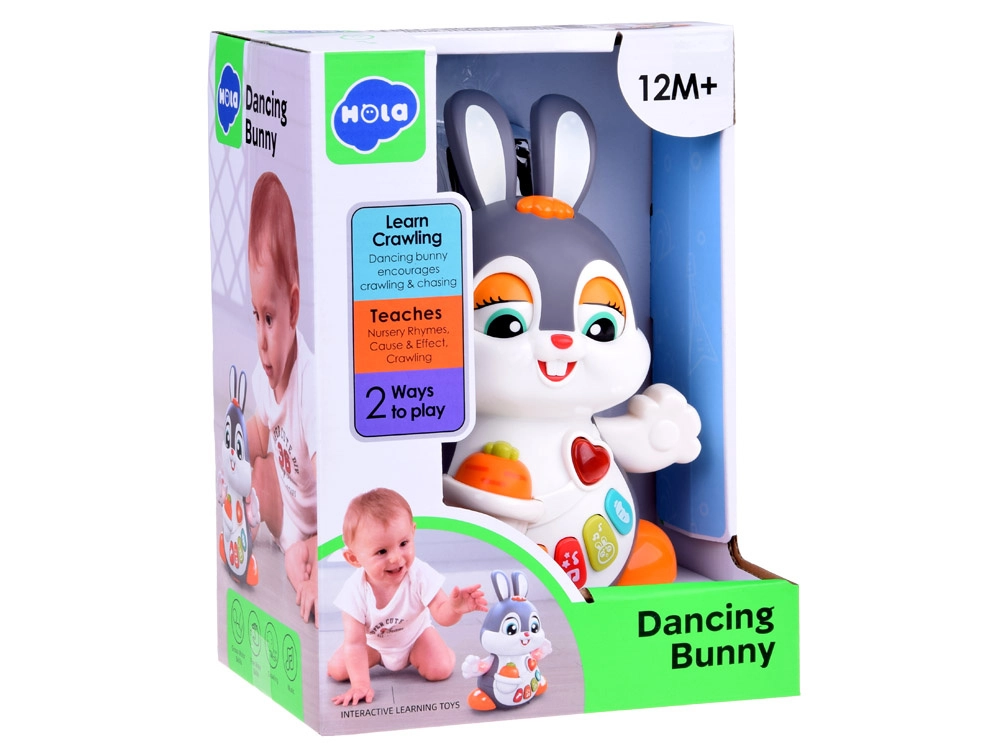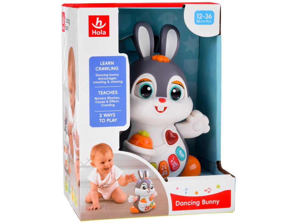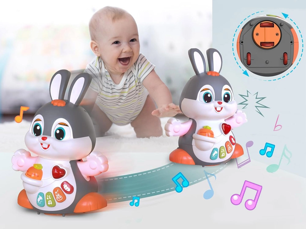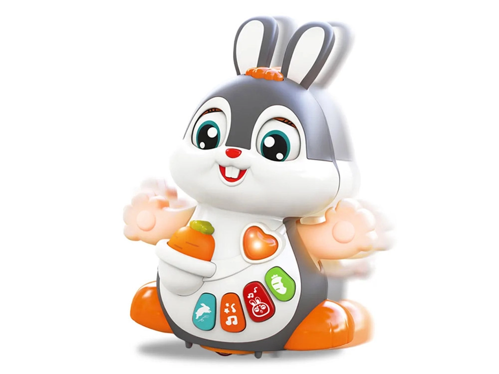 Interaktīvais dejojošais trusītis ir lielisks kompanjons pirmajiem soļiem un rāpošanai. Rotaļlieta prot kustēties, mirkšķināt acis un spīdēt mūzikas ritmā. Bērnus piesaista krāsainās pogas ar dažādām funkcijām: melodijas, sirds puksti, lēkāšanas vai burkāna graušanas skaņas – viss pavadīts ar gaismas efektiem.