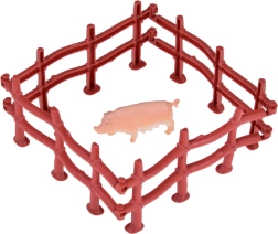 - Bagātīgs saturs: dažādi dzīvnieki + žogs, siena ķīpa, stumbri, krūms un spēļu pamatne.