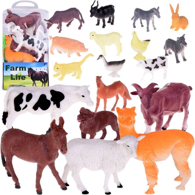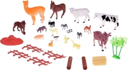Govs, zirgs, suns, ēzelis, aita ar jēru, kazas, alpaka, cūka, bivolis, kaķis, trusis, pīle un vista, papildināti ar žogu, siena ķīpu, stumbriem, krūmu un spēles laukumu.