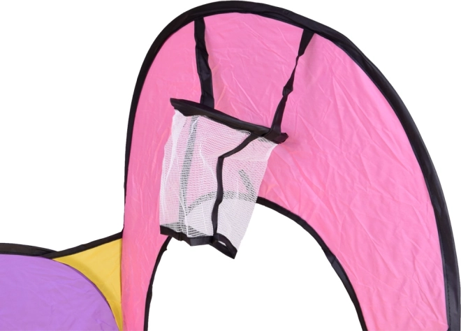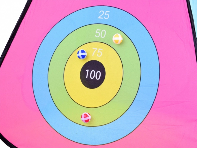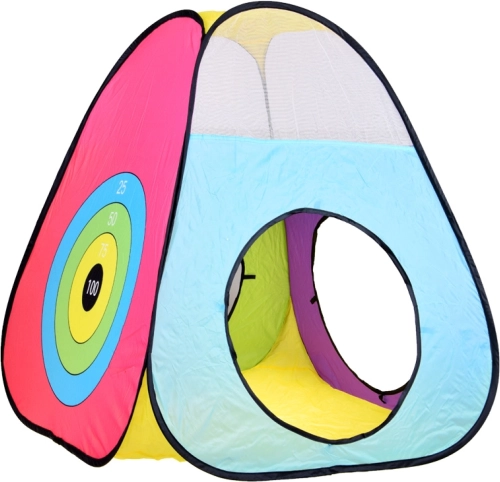 Trīsstūrveida telts ar krāsainu mērķi un caurumiem trāpīšanai attīsta precizitāti un motoriku. Lieliska sacensību izklaide mazajiem metējiem.