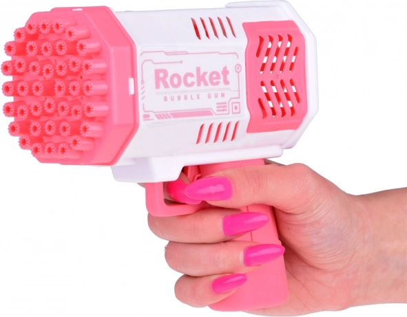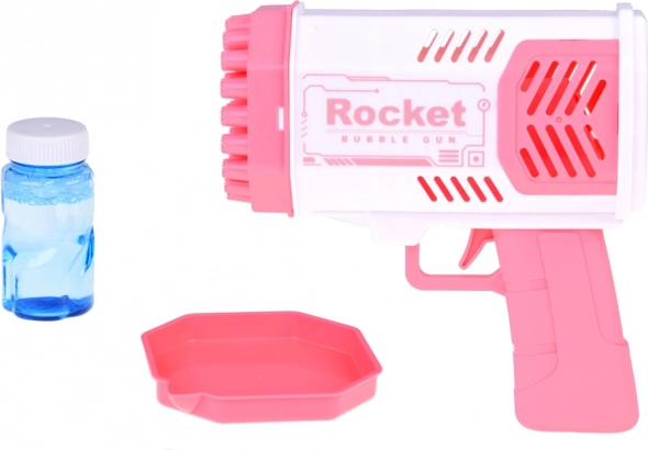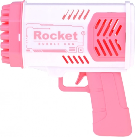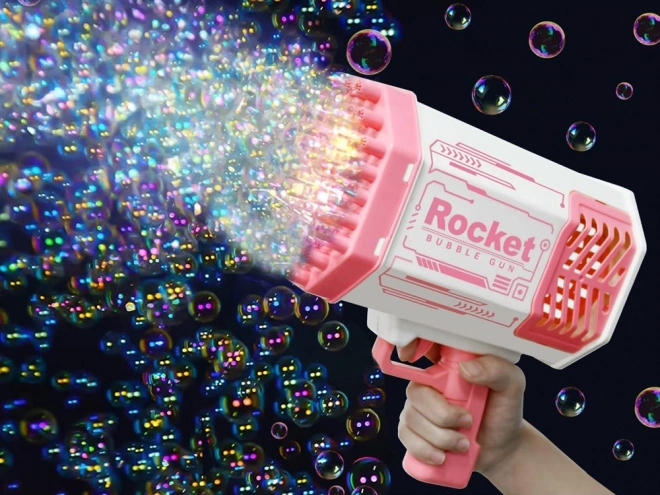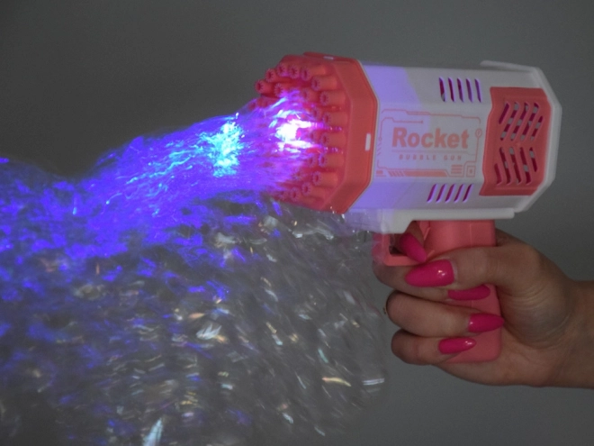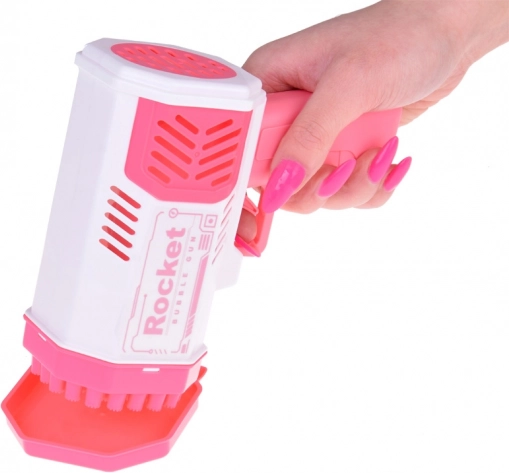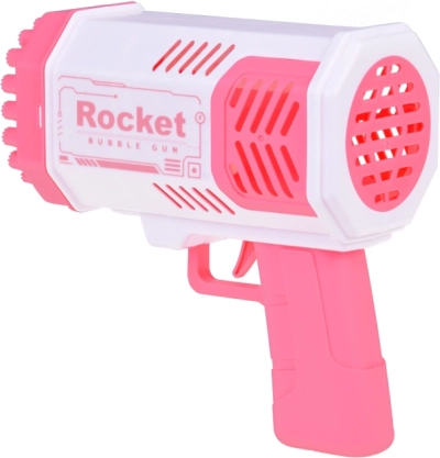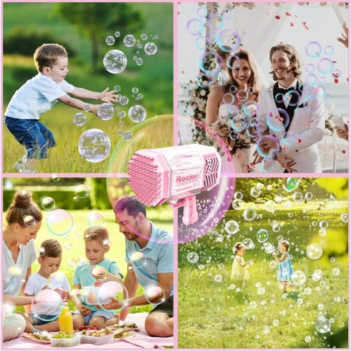 Šī unikālā burbuļu pistole neprasa iebūvētu šķidruma tvertni. Kā radīt skaistus varavīksnes burbuļus? Vienkārši ielejiet nelielu daudzumu komplektā iekļautā šķidruma rozā trauciņā un iemērciet tajā pistoles priekšējo daļu. Pēc tam tēmējiet un nospiediet mēlīti. Jūsu acu priekšā atvērsies neticams skats – no 40 atverēm izšaujas apaļas, mirdzošas, košas formas, kas iepriecinās ikvienu skatītāju!