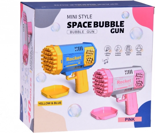 Pistole spēj vienlaikus radīt līdz 40 mirdzošiem burbuļiem, kas aizrauj gan bērnus, gan pieaugušos.