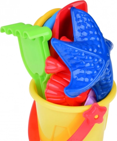 - 1× spainītis, 3× formiņa (jūras zvaigzne, jūraszirdziņš, dinozaurs), 2× lāpstiņa, 1× grābeklis, 1× sietiņš