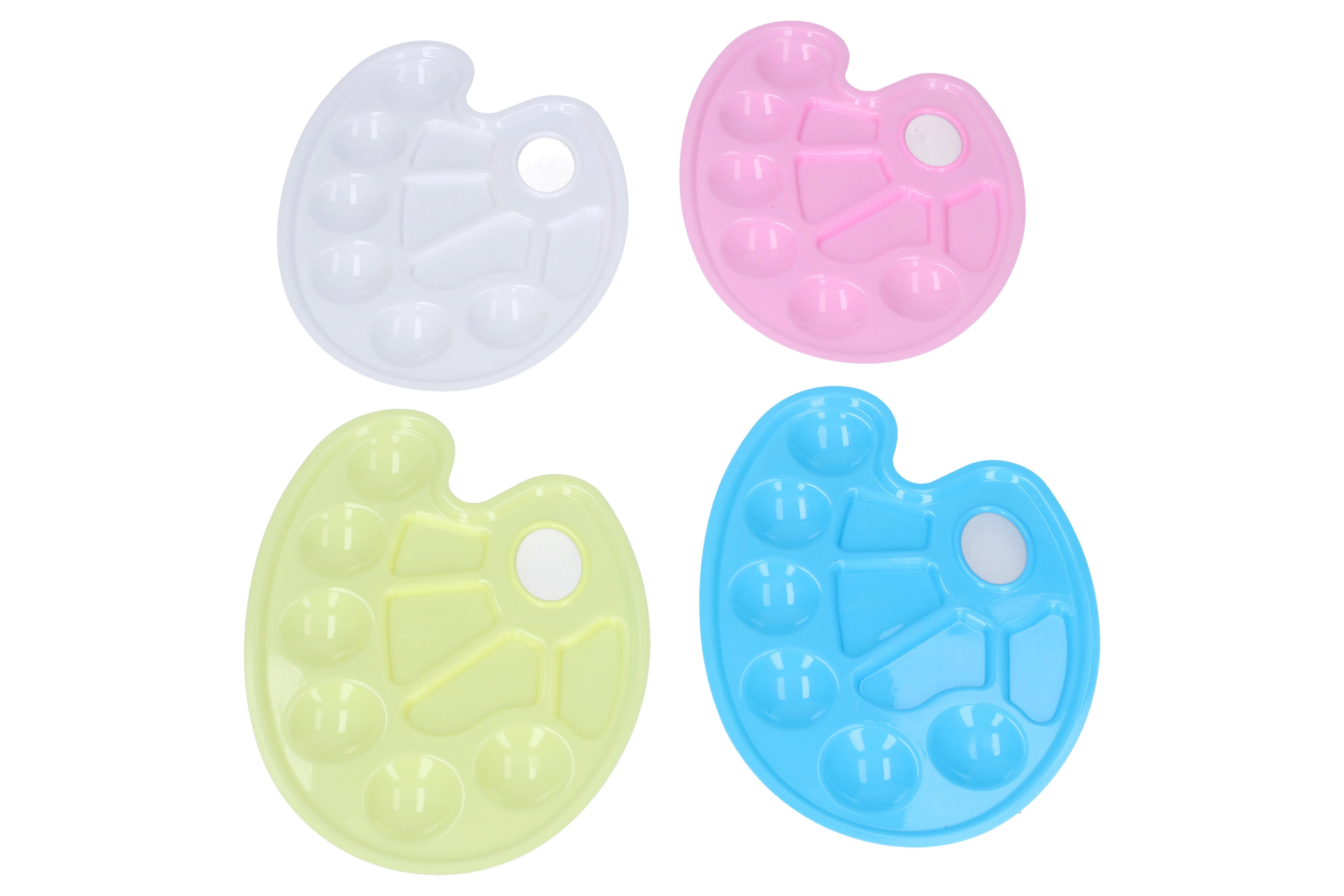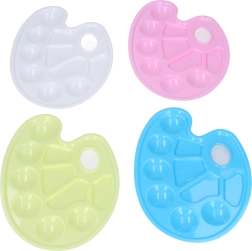 Šī praktiskā plastmasas gleznotāja palete ir paredzēta ērtai temperas un citu cieto krāsu jaukšanai. Viegls materiāls labi turas rokā un ir viegli tīrāms, tāpēc tā ir ideāli piemērota regulārai lietošanai skolā, darbnīcā un mājās.