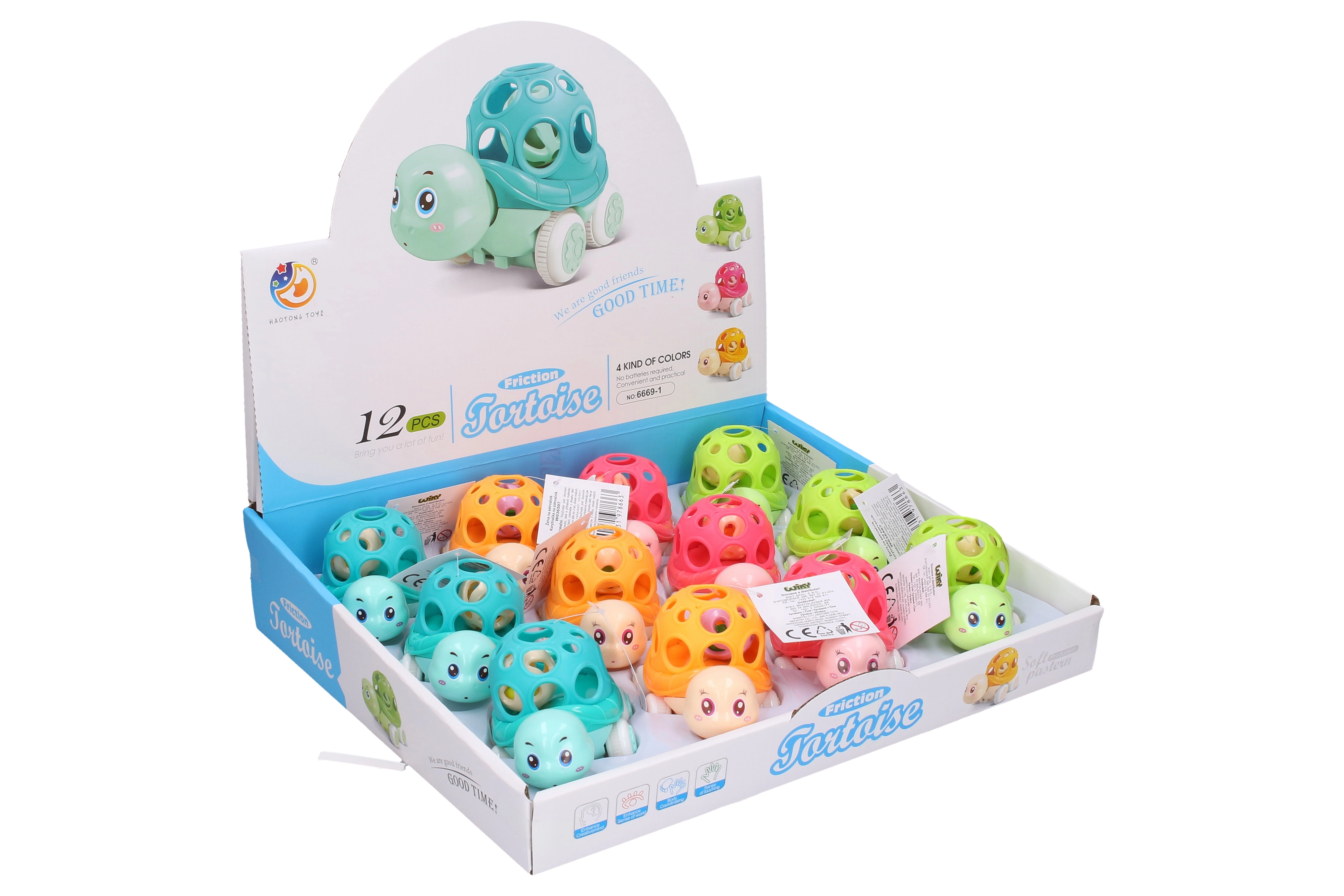 Četras krāsu versijas, kas apburs bērnus: zila, oranža, zaļa un rozā. Bruņurupucis ir izgatavots no izturīgas plastmasas, kas nodrošina ilgu kalpošanas laiku. Pateicoties spararata piedziņai, bruņurupucis viegli pārvietojas pa grīdu, sniedzot bērniem vēl vairāk jautrības.