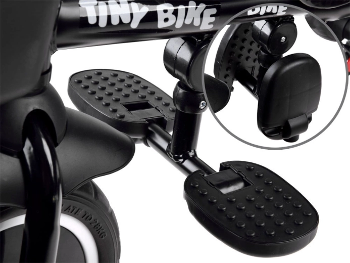 Vecāki novērtēs regulējamo vadstieni ar ērtu satvērienu, dubultās stāvbremzes uz aizmugurējiem riteņiem un praktiskās glabāšanas vietas: priekšējo groziņu, aizmugurējo lielo grozu un mazo somiņu sīklietām. Riteņi no EVA putām neprasa pumpēšanu un nodrošina klusu, stabilu gaitu. Noliecamas kājslaukas/kājbalsti un pedāļi uz priekšējā riteņa atvieglo pāreju starp režīmiem, tāpēc trīsritenis organiski aug līdzi bērnam.