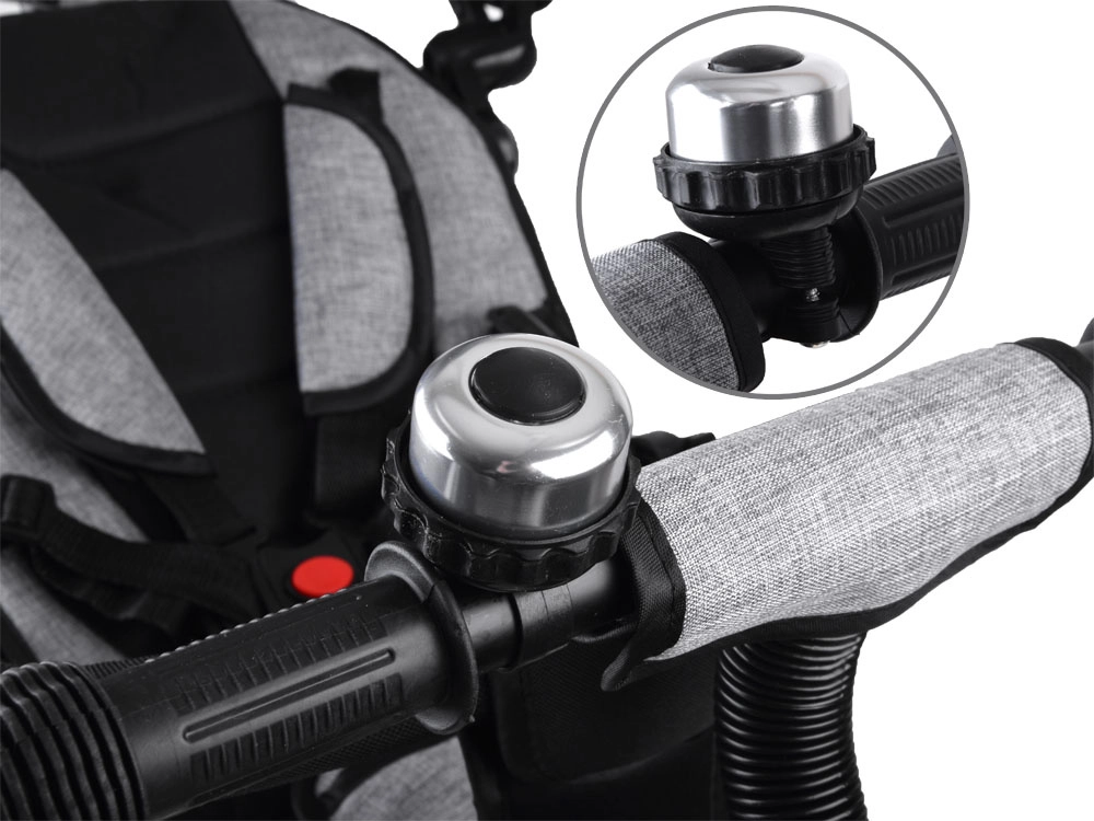 Metāla zvans drošai apkārtējo brīdināšanai un ērti putu rokturi uz vadotnes atvieglo trīsriteņa vadīšanu vecākiem arī rosīgā vidē.