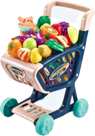 - Bērnu iepirkumu rati ar augļu un dārzeņu komplektu griešanai