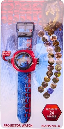 Izklaidējošs bērnu elektroniskais pulkstenis ar integrētu dinozauru projektoru piedāvā 24 kadrus projicēšanai, vienkāršu vadību ar pogu, ērtu platu siksniņu un baterijas komplektā. Atbilst CE un EN71 prasībām un ir piemērots no 3 gadu vecuma.