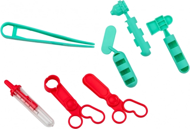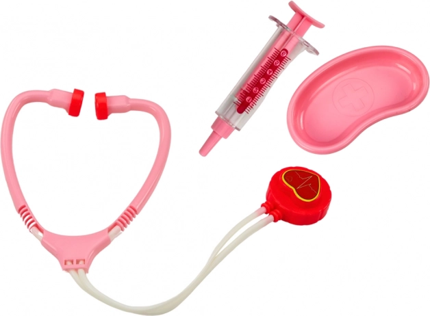 Izklaidējošs un izglītojošs bērnu ārsta komplekts rozā koferītī attīsta iztēli, empātiju un sīko motoriku. Komplektā ir stetoskops, šķēres, pincete un šļirces un citi piederumi, kas bērniem droši tuvina medicīnas pasauli. Praktisks plastmasas koferītis atvieglo glabāšanu un pārnešanu. Piemērots bērniem no 3 gadu vecuma, ar CE sertifikāciju un atbilstību standartam EN71.