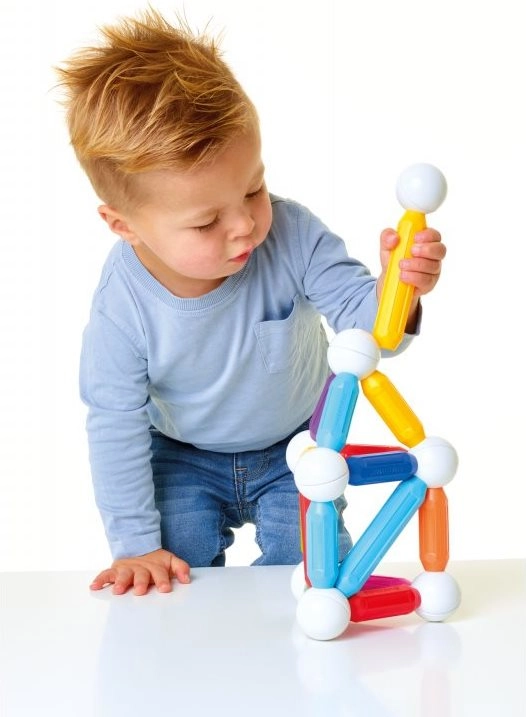 Lielas, izturīgas detaļas ar spēcīgiem magnētiem ir ideālas mazām bērnu rokām. Atbilst stingriem drošības standartiem un veicina sīko motoriku.