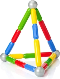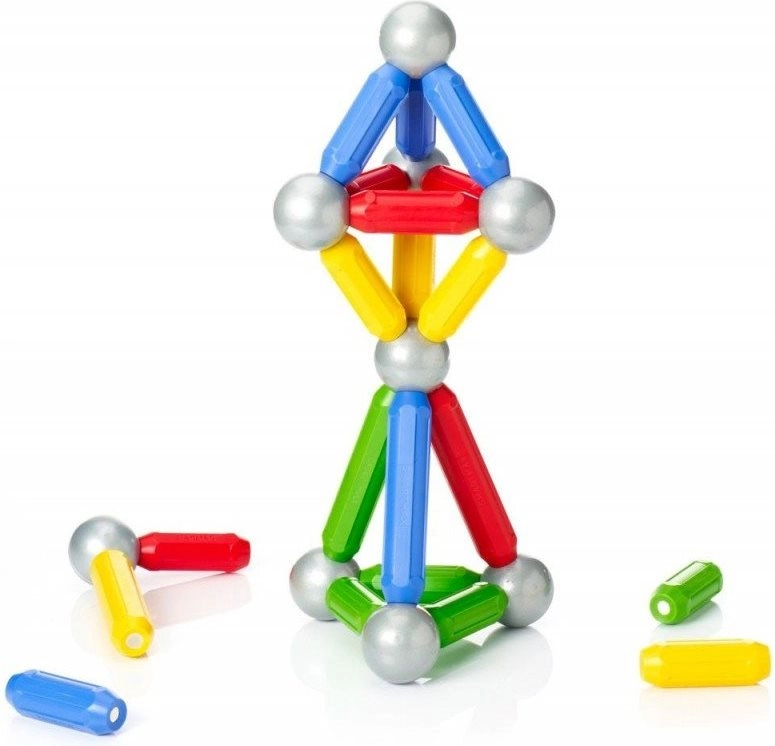 Stienīši un metāla bumbiņas savienojas ar vienu klikšķi. Bērni bez piepūles veido 2D un 3D formas, sākot no torņiem līdz pat tiltiem.