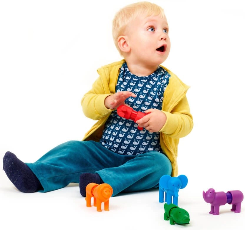 Rotaļlieta izmanto magnētismu, lai atsevišķās dzīvnieku daļas varētu viegli un droši savienot.
