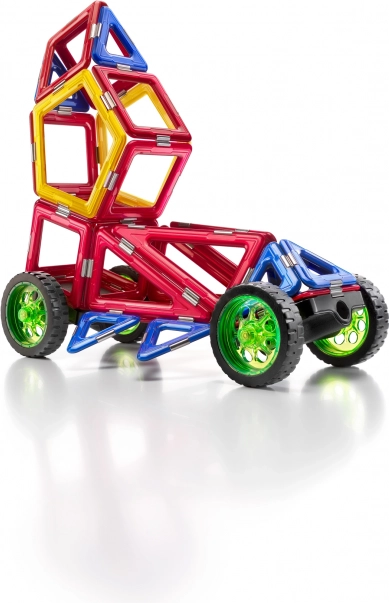 Būvējiet sacīkšu auto pēc instrukcijām vai savas fantāzijas! GEOSMART Roboracer ir dinamiskas krāsas un robustas uzbūves magnētiskais konstruktors, kas rosina izzināt pamatprincipus tehnikā. Spēcīgie magnēti ar dubulto drošības sistēmu notur modeļus stingri kopā un nodrošina rotaļlietas ilgmūžību.