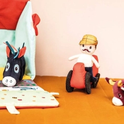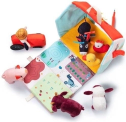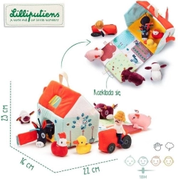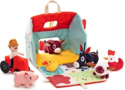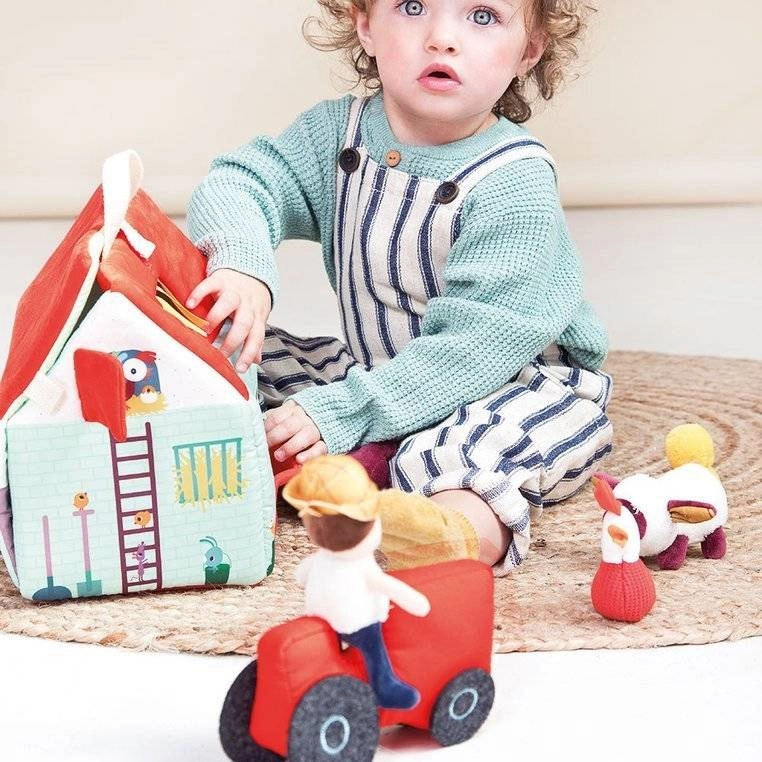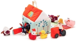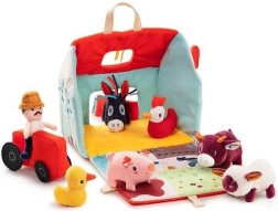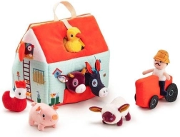 Šis tekstila komplekts pārvērš katru dienu lauku sētas piedzīvojumā. Krāsainā mājiņa–kūts izlokās par lauku aploku ar dožu, ganību, dīķa un dubļu laukumiņu apdruku sivēnam. Komplektā ir bārdainais zemnieks Džefs, sarkans traktors un dzīvnieciņi: govs Rozālija, sivēns Simons, aitiņa Ivons, pīļtēviņš Gastons, vista Poleta un ēzelītis Injass. Viss ir izgatavots no mīkstiem materiāliem ar dažādām struktūrām maņu attīstībai.