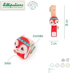 Mīkstais LILLIPUTIENS plaukstas locītavas grabulītis ar lapsiņas Alises tēlu ir ideāla pirmā rotaļlieta zīdaiņiem no dzimšanas. Aizdare ar līplenti, patīkams kokvilnas audums un vieglais izpildījums nodrošina ērtu nēsāšanu gan uz rociņas, gan kājiņas. Kustības laikā rotaļlieta maigi grab, bet pieskārienā čaukst, stimulējot dzirdi, redzi un tausti, kā arī dabiski attīstot sīko motoriku.