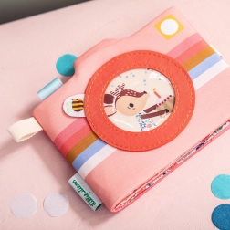 Albumam ir 10 lapas 15 × 18 cm izmērā ar mazgājamu virsmu, tādēļ tas viegli izturēs ikdienas bērnu rociņu pieskārienus. Materiāls no 100% poliestera un akrila adījuma ir mīksts, viegls un patīkams turēšanai. Piemērots no 9 mēnešu vecuma.