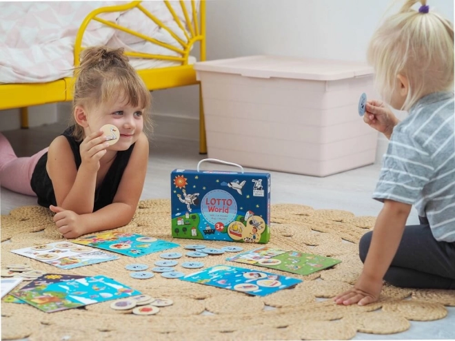 Loto Pasaule ir paredzēta 1–6 spēlētājiem un piedāvā četrus dažādus grūtības līmeņus, nodrošinot izklaidi bērniem ar atšķirīgu vecumu un prasmēm. Galvenais mērķis ir pieskaņot žetonus atbilstošajiem attēliem uz spēles dēļa. Tādējādi bērni ne tikai paplašina savu vārdu krājumu, bet arī nodarbojas ar svarīgiem kognitīvajiem procesiem.
