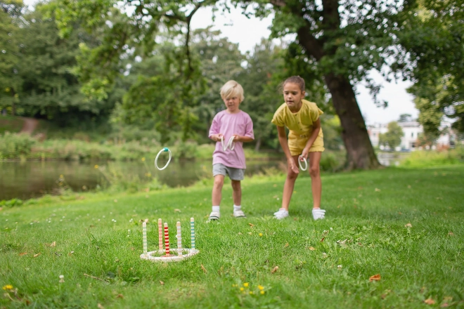 Šī tradicionālā spēle ar koka pamatni un krāsainiem riņķiem ir piemērota gan ārā, gan telpās. Pārbaudiet savas prasmes metot riņķus uz krāsainiem mietiņiem un krājiet pēc iespējas augstāku rezultātu. Spēle ir aizraujoša un izaicinoša, jo varat pielāgot mešanas attālumu.