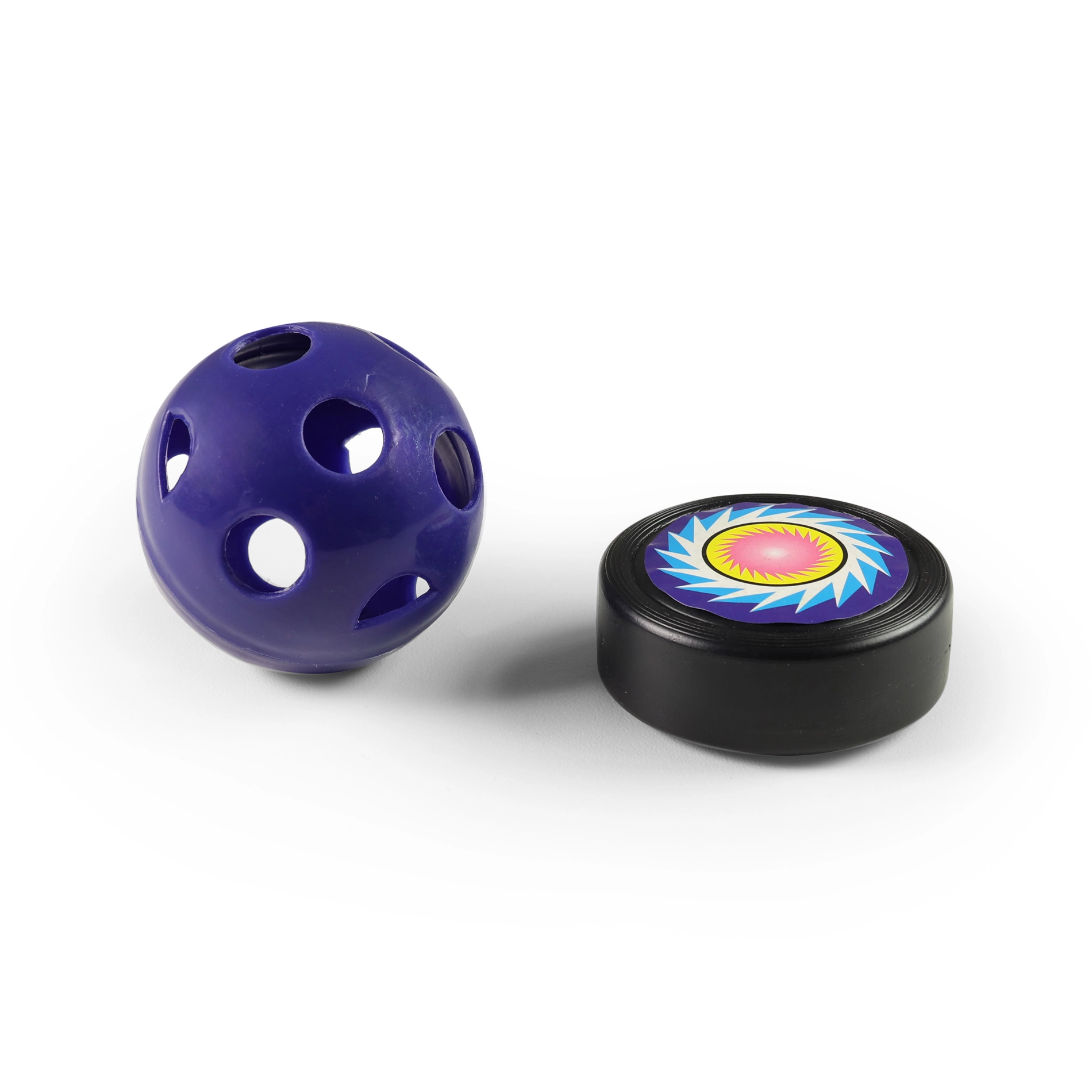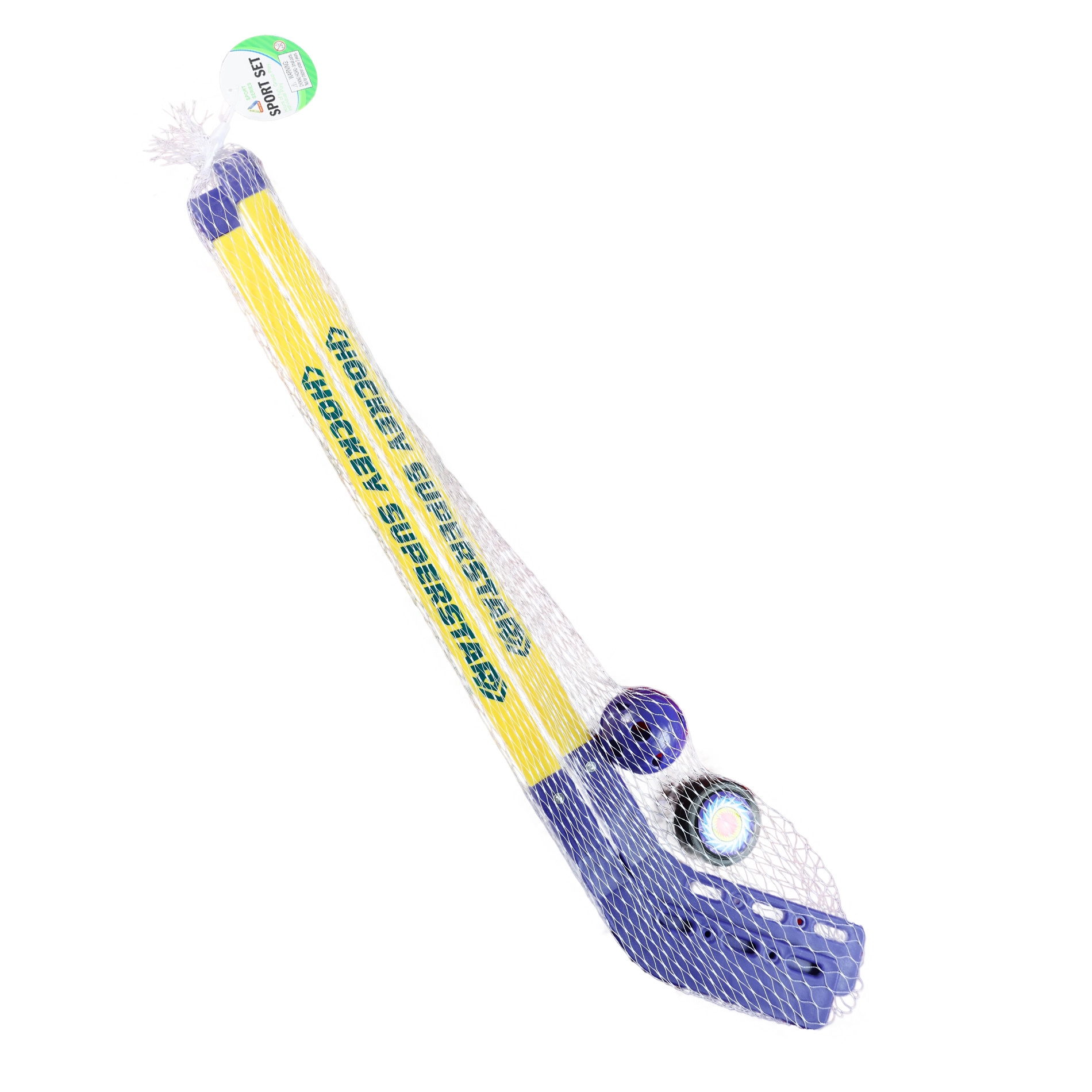 Šajā komplektā ir viss nepieciešamais — divas nūjas, ripa un bumbiņa — lai uzreiz varētu spēlēt.