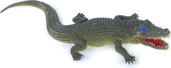 Detalizēta zvīņu tekstūra, ķermeņa forma un izteikta mute ar zobiem padara krokodilu pievilcīgu un ticamu rotaļlietu.