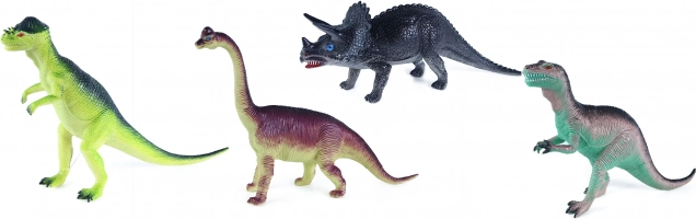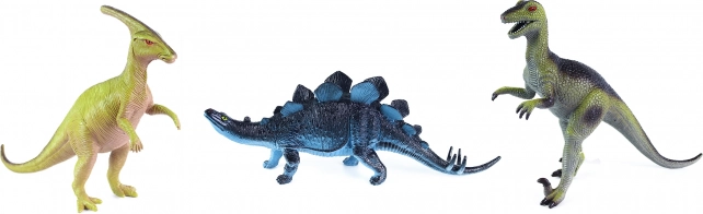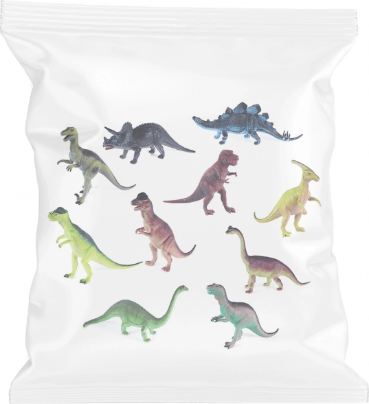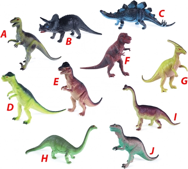 Komplektā ietilpst desmit dažādu dinozauru sugas dažādās krāsās, kas pārsteigs ikvienu bērnu ar savu daudzveidību.