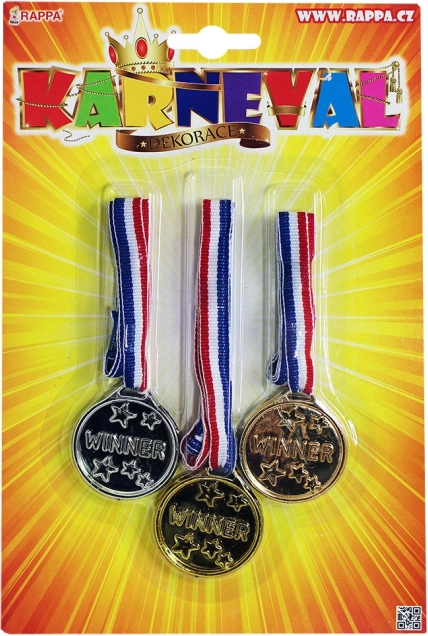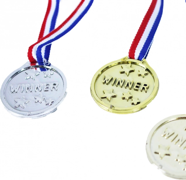 Pārsteidziet savus draugus ar īstām medaļām! Komplektā ietilpst zeltīta, sudrabota un bronzas medaļa, visas ar praktisku aukliņu.