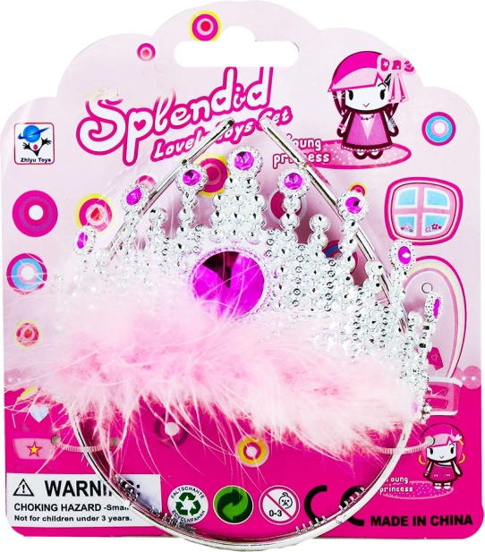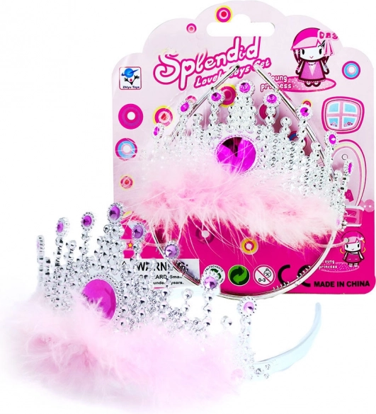 Elegants kronis visām mazajām princesēm, rotāts ar smalkiem rozā elementiem un spalvām. Lielisks aksesuārs kostīmam, kas iepriecinās ikvienu mazo dāmu.