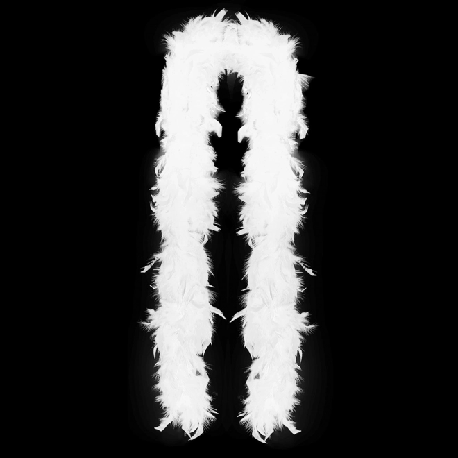 Pievienojiet savam izskatam glamūra elegances piesitienu. Šis baltais spalvu boa ir viegls, patīkams pieskārienam un viegli kombinējams gan ar vakarkleitām, gan karnevāla kostīmiem. Pateicoties aptuveni 180 cm garumam, to ir ērti nēsāt gan pār pleciem, gan ap kaklu.