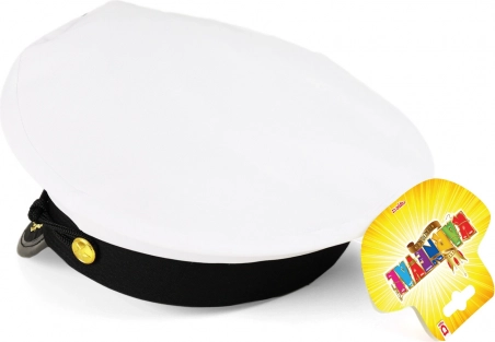 Stilīga bērnu jūrnieka cepure ar kapteiņa motīvu karnevālam, masku ballēm un tematiskiem svētkiem. Tās apkārtmērs ir apm. 54 cm, un tā ir lielisks kostīma aksesuārs.