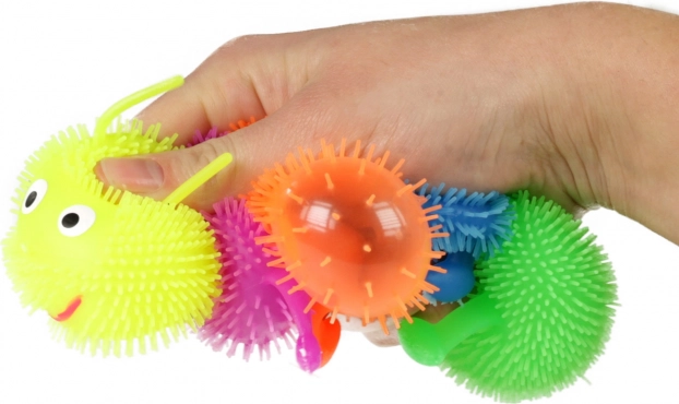 Pufers kāpurs ir ideāls izklaides aksesuārs visām vecuma grupām. Pateicoties spiešanas un stiepšanas iespējai, tas ir lieliska antistresa rotaļlieta.