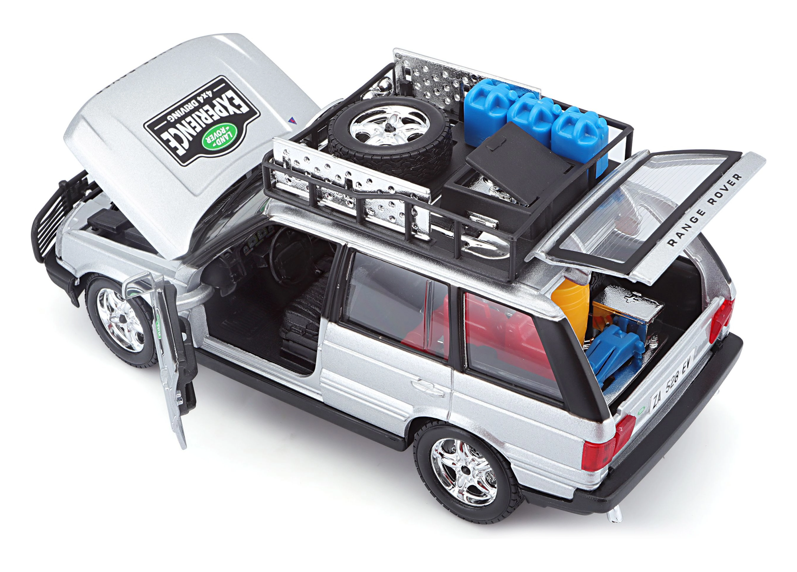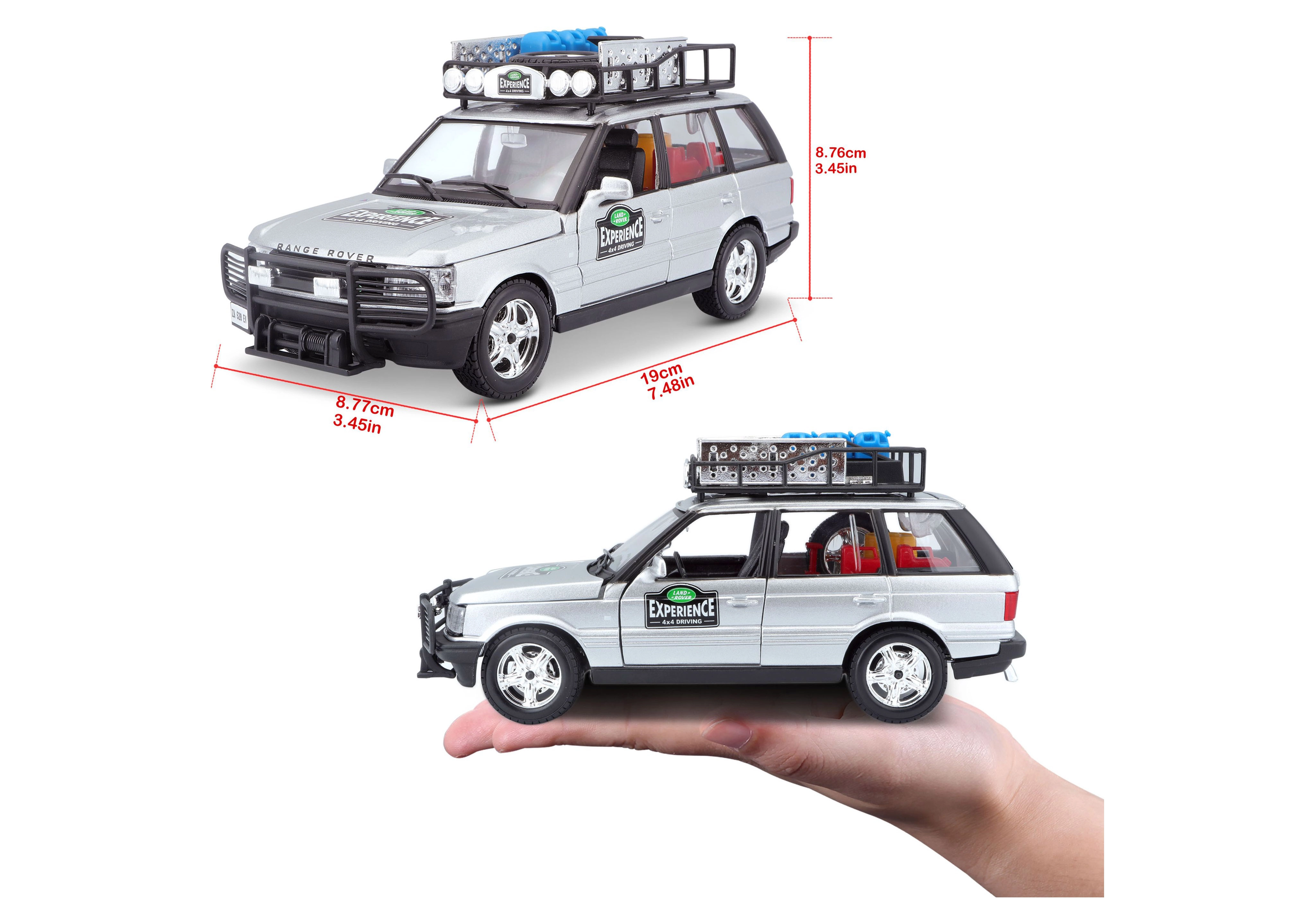 Šis precīzi izstrādātais RANGE ROVER modelis mērogā 1:24 piedāvā autentiskas detaļas, kas iepriecinās ikvienu apvidus auto cienītāju. Sudraba virsbūvi papildina jumta bagāžnieks ar piederumiem, priekšējais aizsargrāmis un reālistiskas uzlīmes, veidojot pievilcīgu izskatu gan rotaļām, gan ekspozīcijai.