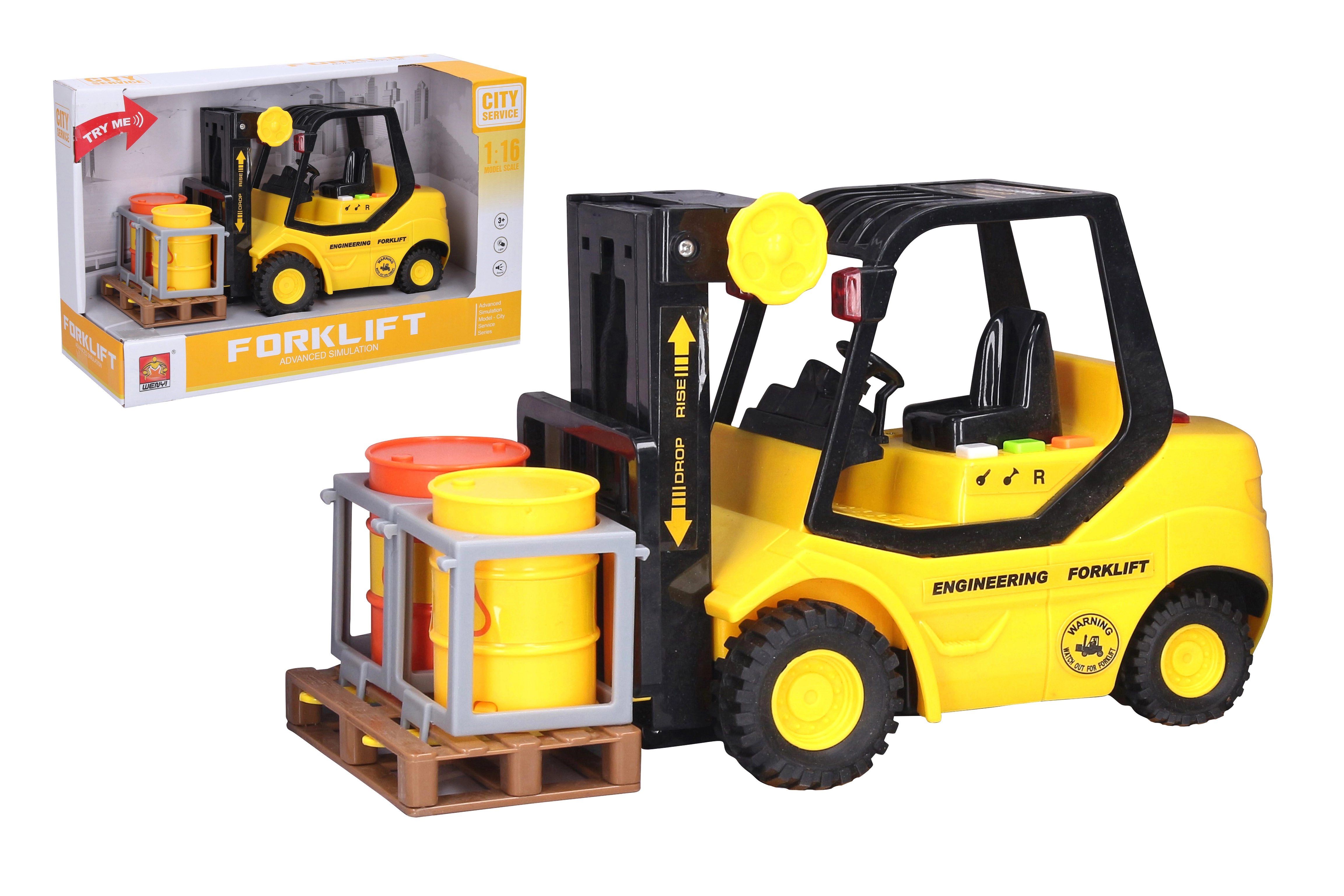 Izbaudiet stundām ilgu izklaidi ar šo iekrāvēju dzelteni melnā krāsojumā, kas piedāvā lielisku manervētspēju un skaņas un gaismas efektus.
