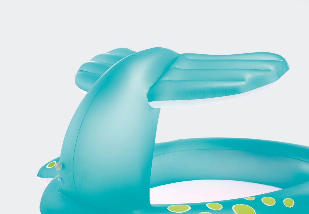 Uzpūšamais vaļa formas baseins no zīmola INTEX ir lieliska izvēle vasaras priekam dārzā. Pateicoties integrētajai smidzinātāja dušai astē, ko pievienosiet parastai dārza šļūtenei, tas veido patīkamu ūdens strūklu, kas veldzē un izklaidē. Praktiskais izlaišanas vārsts atvieglo ūdens nolaišanu pēc peldēm.