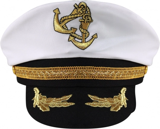 Balta kroņa daļa, melns naguļauss un zeltīts izšuvums ar enkuru veido patiesu kapteiņa stilu jebkurai situācijai.