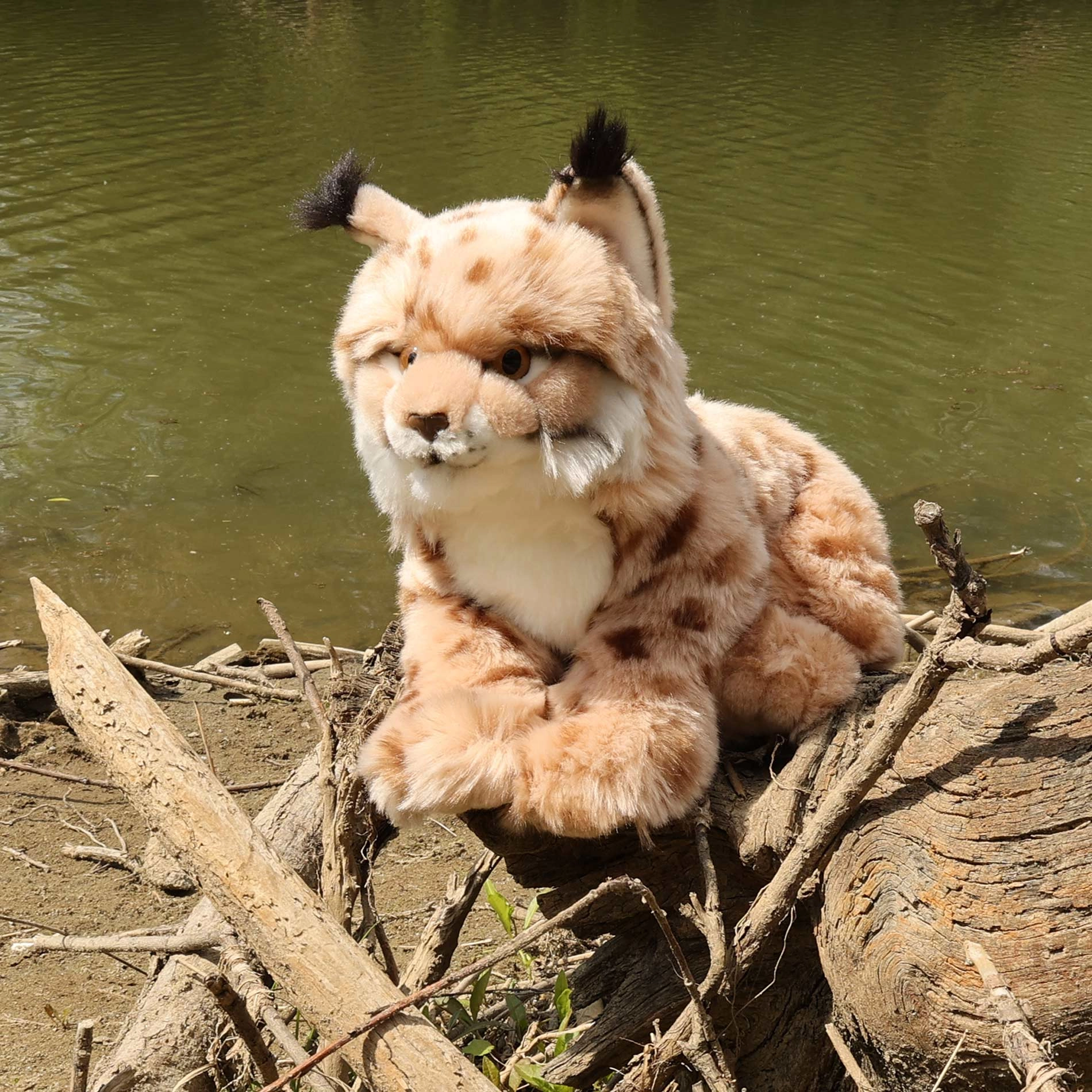 Uzticama krāsojuma raksts, plastmasas acis un smalki pušķīši uz ausīm padara lūsi par iespaidīgu rotaļu un dekoratīvu draugu.