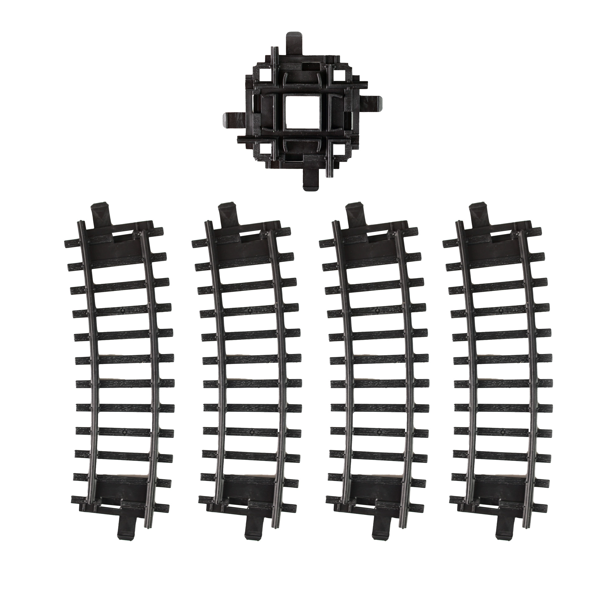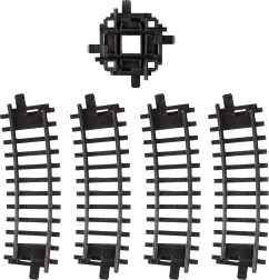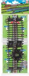 - Sliežu daļu komplekts (2× liekta sliede, 1× krustojums)