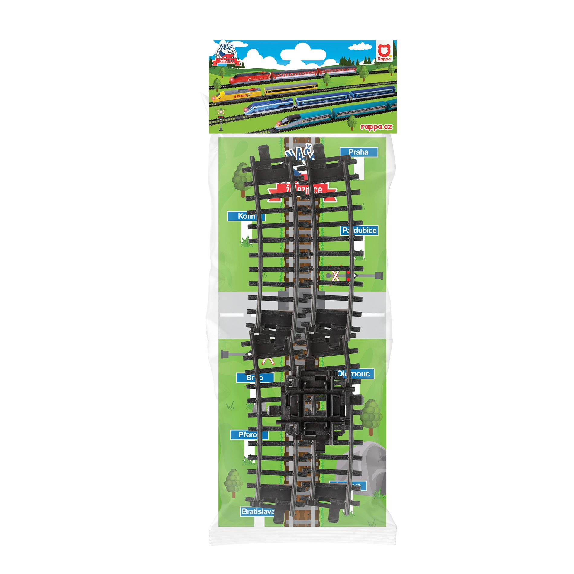 Paplašini savu vilcieniņu pasauli ar komplektu, kurā ir 2 liektas sliedes un krustojums. Daļas ir saderīgas ar RegioJet, České dráhy, SC Pendolino un Železničná spoločnosť Slovensko vilcieniņiem, tāpēc viegli pagarināsi apli un pievienosi jautrus sliežu krustojumus vēl garākai trasei un radošai būvēšanai.