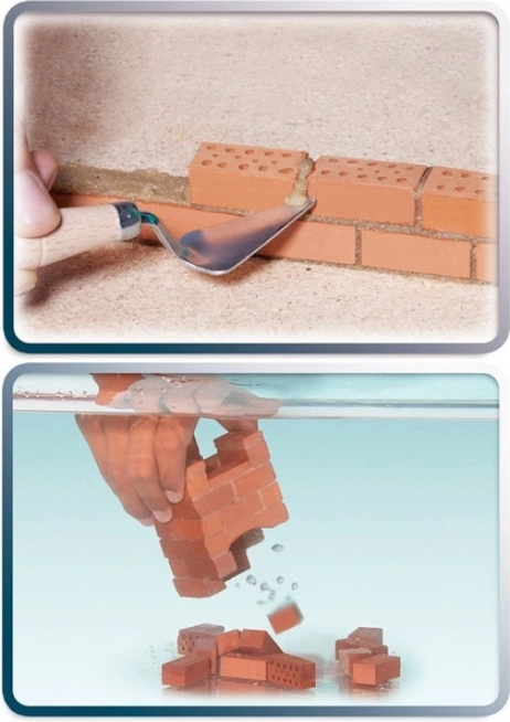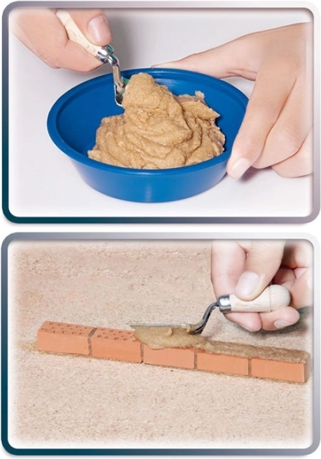 Šis unikālais komplekts ļauj uzbūvēt māju vai pili kā īstam būvniekam. Vienkārši sajauciet javu, savienojiet ķieģeļus un ķerieties pie darba. Kad darbs ir gatavs, veidoto objektu var iemērcēt ūdenī, noņemt javu, nožāvēt un sākt būvēt no jauna.