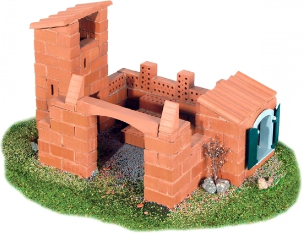 Konstrukciju komplekts ir izgatavots no īstiem ķieģeļiem, kurus savieno kukurūzas java.