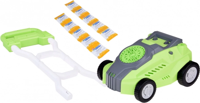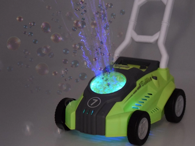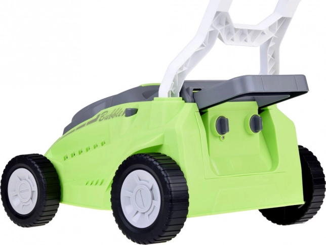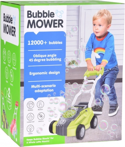 Šis burbuļu pļāvējs apvieno kustību, iztēli un sensorās sajūtas vienā aizraujošā rotaļlietā. Atliek vien piepildīt tvertni ar burbuļu šķīdumu, nospiest pogu, un, stumjot pļāvēju, gaisā dejos daudz krāsainu burbuļu.