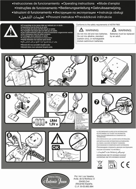 Pēc vieglas vēderiņa nospiešanas lelle izdod mīlīgas čabināšanās/bubināšanas skaņas. Funkciju darbina 3× LR44 baterijas (iekļautas komplektā).