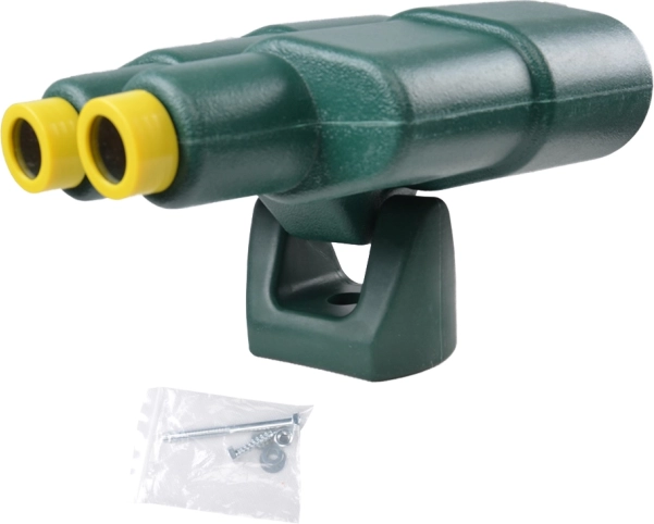 Rotaļu binoklis ir izgatavots no izturīgas plastmasas, kas nodrošina tā ilgmūžību un noturību āra rotaļās.