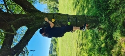 Kāpšanas satvērieni kokam ar siksnām ir lieliska izvēle mājas piedzīvojumiem svaigā gaisā. Pateicoties krāsainām, ergonomiskām formām un pretizslīdes tekstūrai, bērni rotaļājoties attīsta koordināciju un stiprina visu ķermeni. Uzstādīšana ir vienkārša – satvērieni tiek ievērti siksnā un ar sprūdrata palīdzību stingri pievilkti ap stumbru.