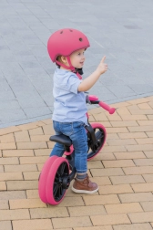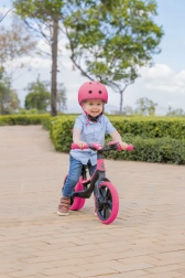 Robusta un izturīga konstrukcija ir paredzēta ikdienas lietošanai, savukārt integrētais pārnēsāšanas rokturis atvieglo vecākiem manipulāciju. Praktiska kāju atbalsta platforma ļauj bērniem izmēģināt slīdēšanu un noturēt stabilu stāju. Līdzsvara ritenis ir lielisks solis ceļā uz braukšanu ar velosipēdu bez sānu palīgriteņiem.
