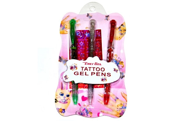 Gēla tetovēšanas pildspalvu komplekts ļaus tev izrotāt lelles un veidot radošus rakstus. Tetovējumu uzlīmes kalpo kā šabloni, kas palīdzēs viegli izveidot perfektu dizainu. Vienkārši novieto uzlīmi vēlamajā vietā, uzmanīgi iekrāso formas un ļauj tintei nožūt apmēram 10 minūtes. Pēc tam uzmanīgi noņem uzlīmi un apbrīno rezultātu.